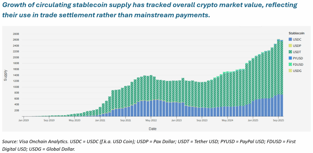 Stablecoins represent real progress in the application of blockchain technology. They demonstrate that digital ledgers can move real money, not just speculative tokens. Yet for now, their practical role is narrow, limited to cross-border and niche applications.